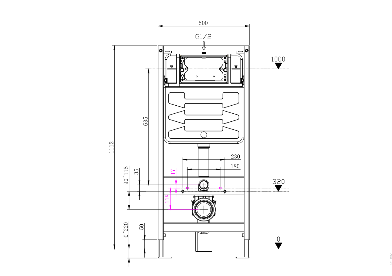 产品名称:带支架入墙式水箱(配挂便器)