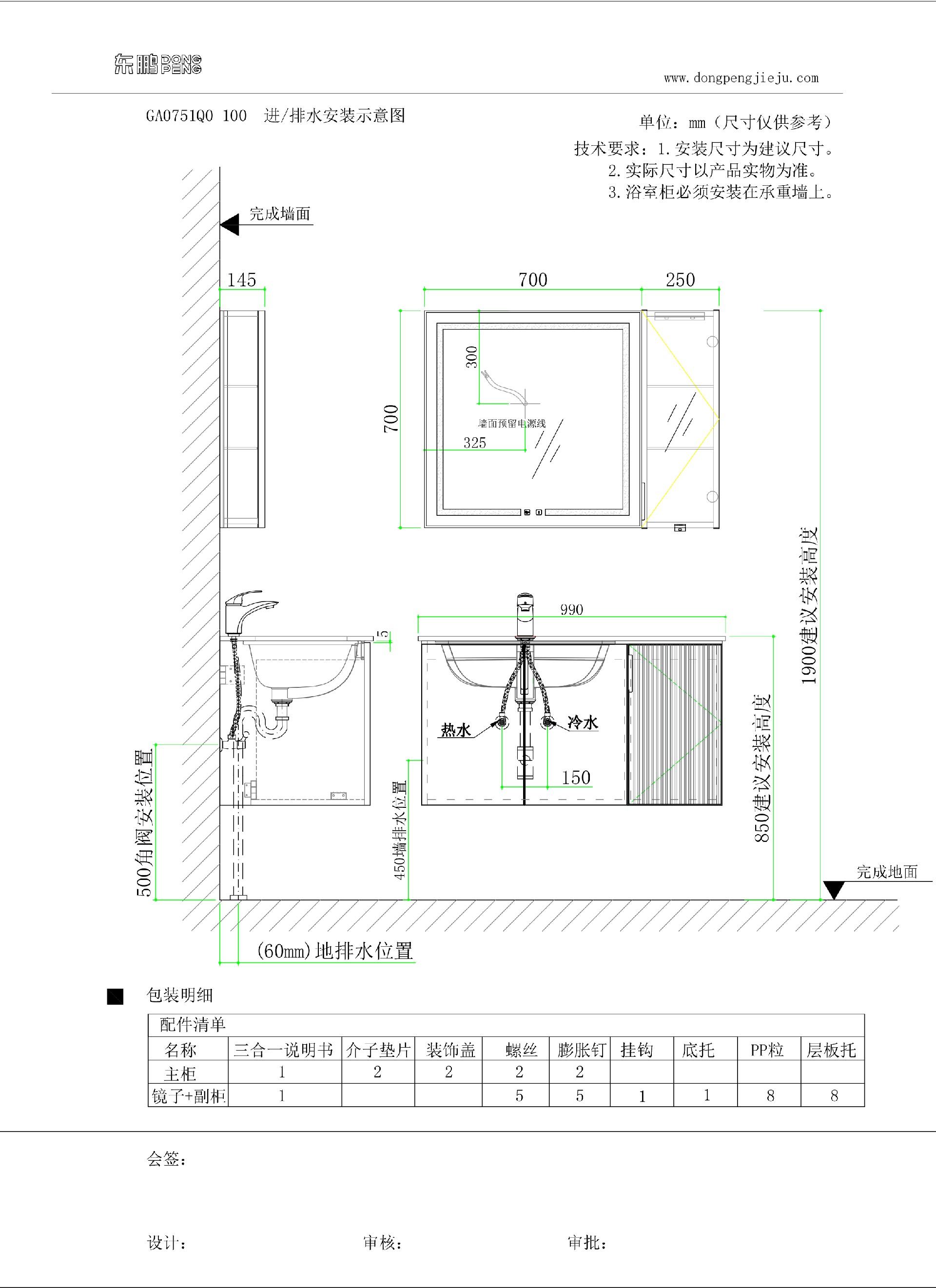 岩板+台下盆 GA0751T0_100 990x495x205mm