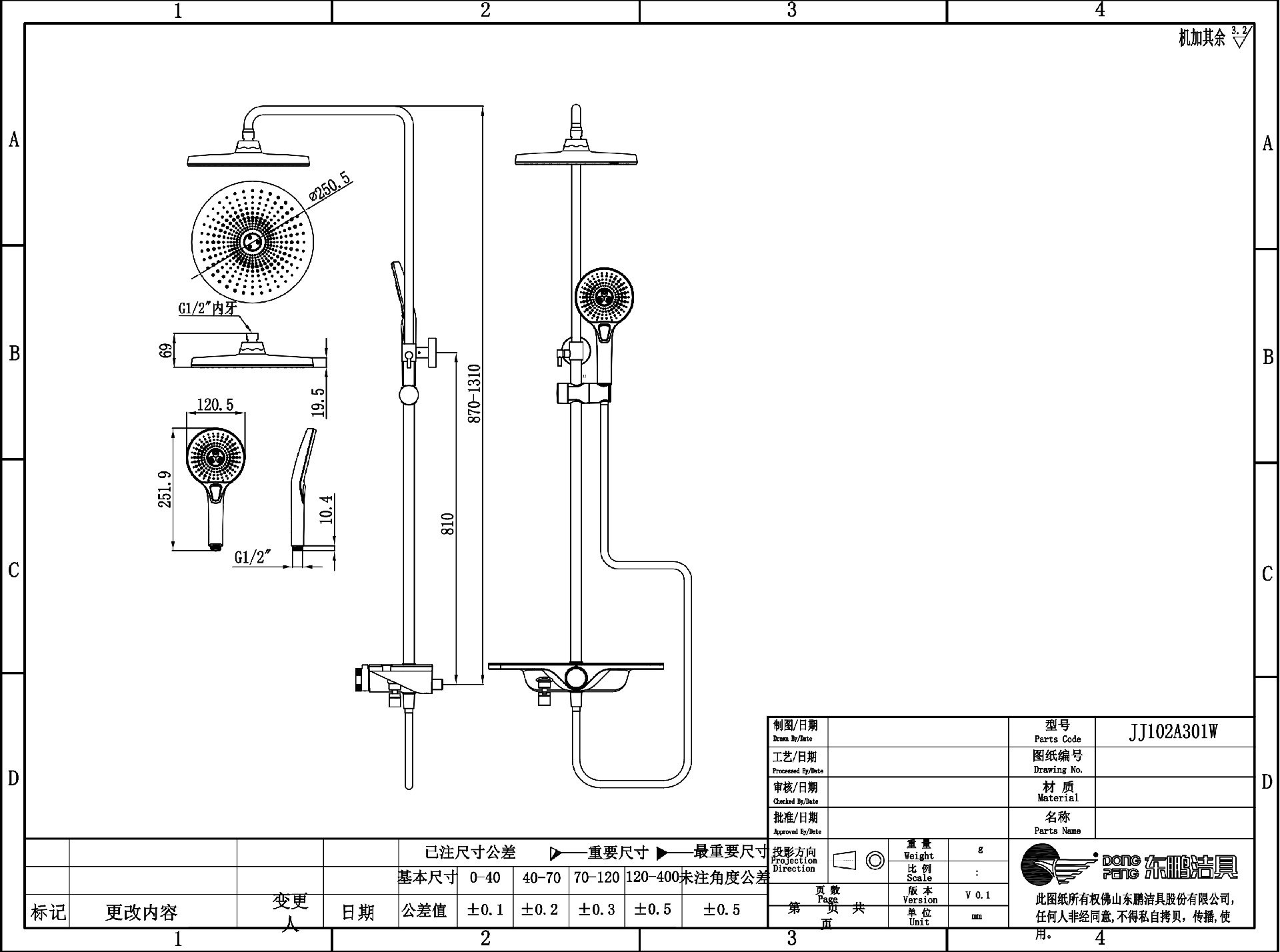 产品配置:10寸圆形顶喷 5寸三功能圆形手持