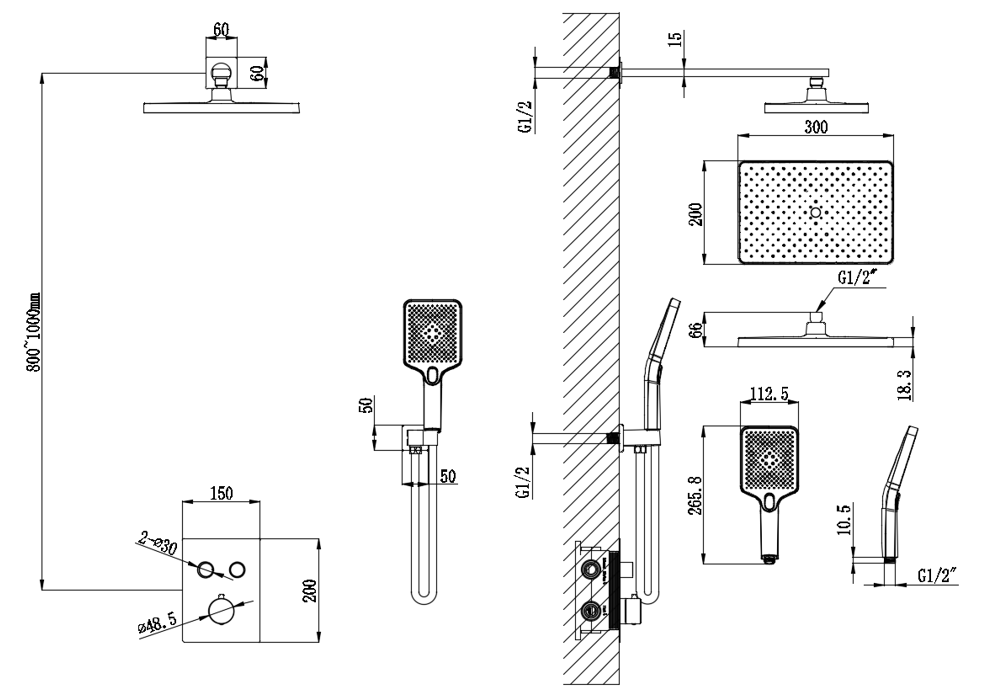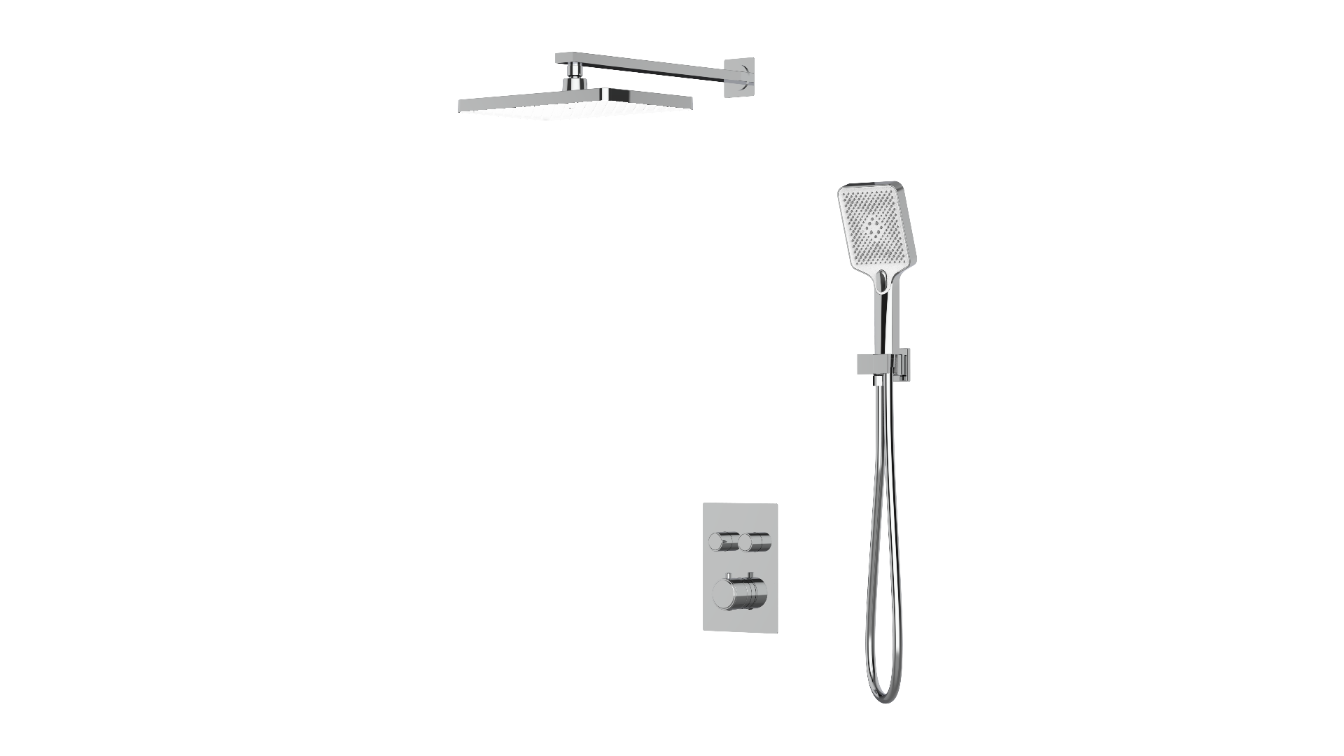 产品配置:12寸方形顶喷、三功能方形手持花洒
