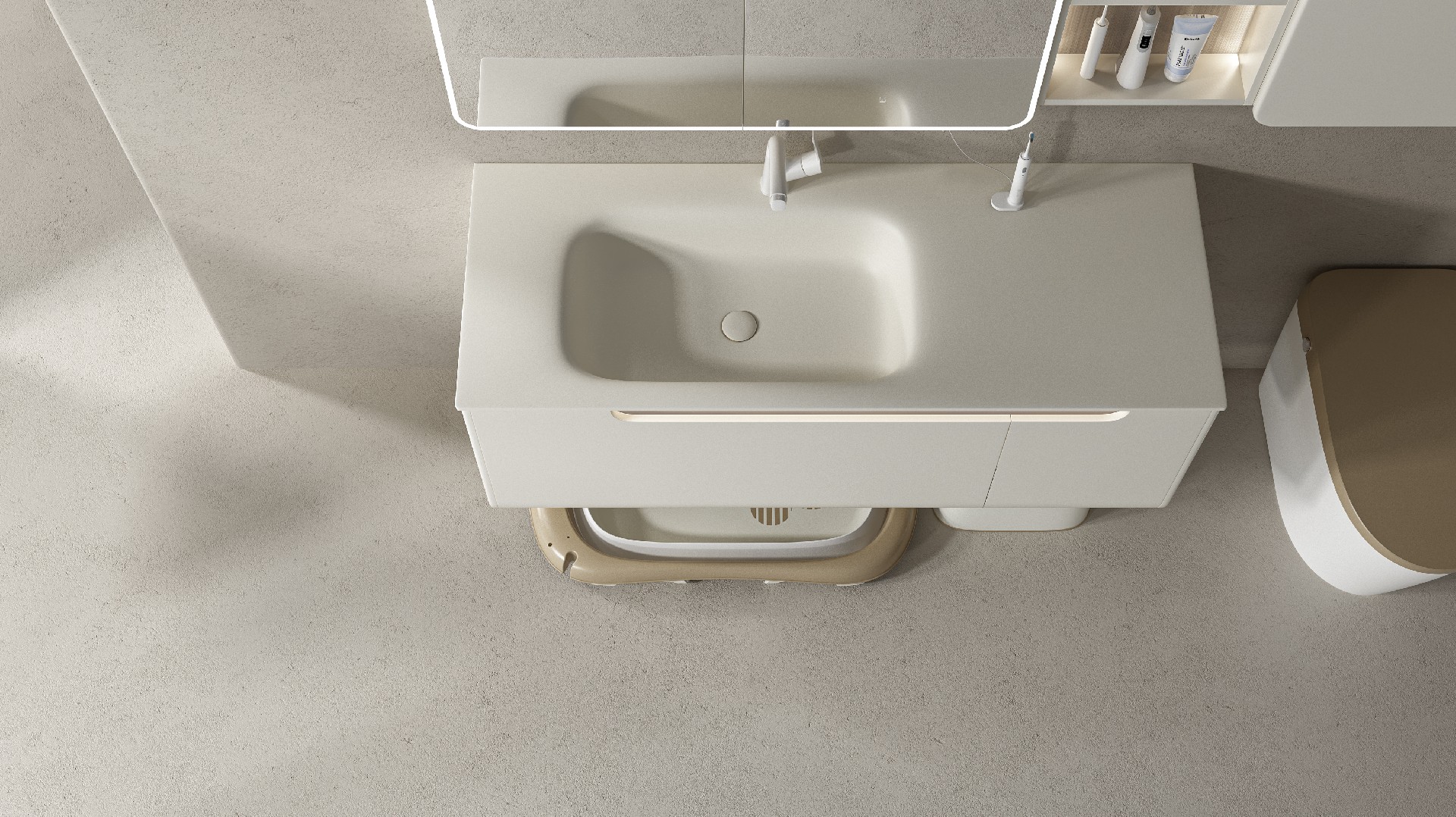 人造石一体盆颜色:奶白
